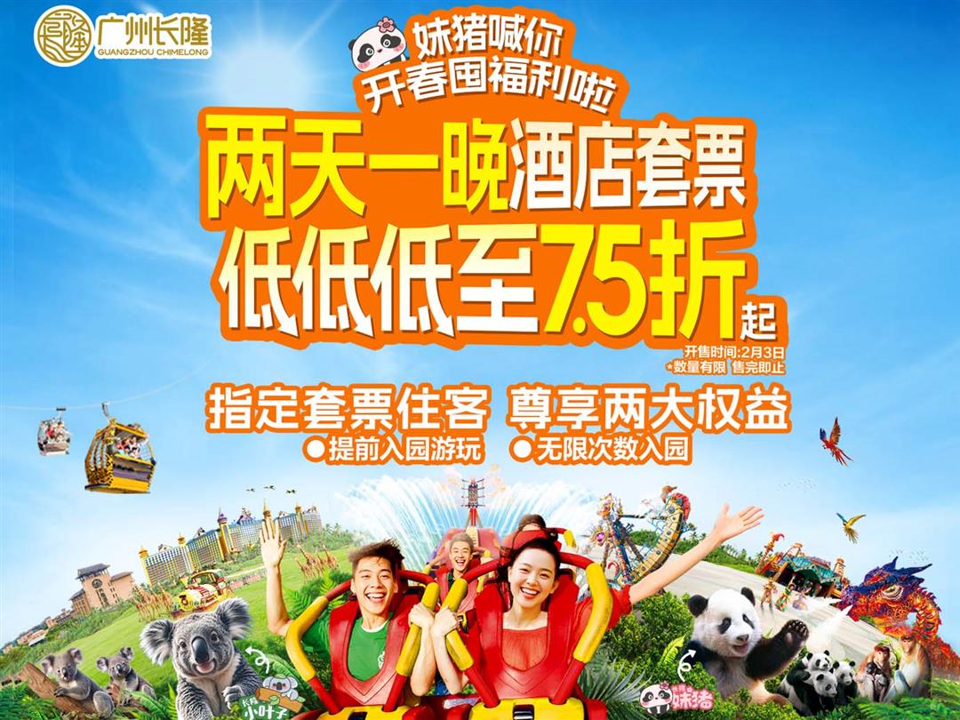 - 即日起,凡预订套票包含长隆欢乐世界/长隆野生动物世界两日票,即可享受入住期间连续两天内多次入园: