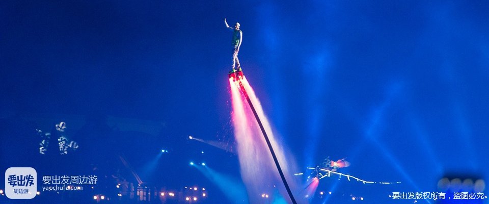 5、每晚的大型“烟花星闪幻彩show”,集闪烁的烟花、激情的音响、动感的喷泉、惊险的水上飞人于一身。