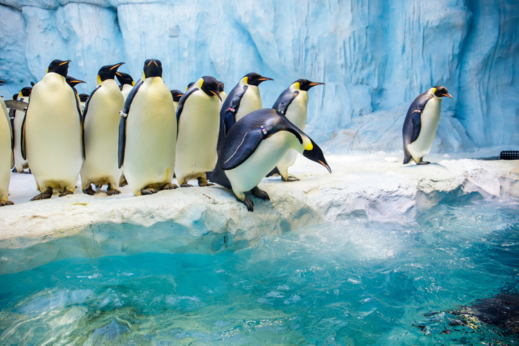 3、海洋动物展馆种类丰富多样。创下五项吉尼斯世界纪录的鲸鲨馆,展出多达2万条珍奇鱼类。帝企鹅馆与新繁育的帝企鹅宝宝近距离接触。