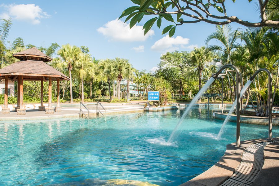 • 温泉中心设有五大主题池区,分别有巴厘岛风情区、欧陆悠闲区、康桥养生区、浪漫情侣区、贵宾接待区。温泉中心、鸣泉居和湖畔别墅雅居将温泉文化与时尚需求巧妙地结合起来,让人流连忘返。