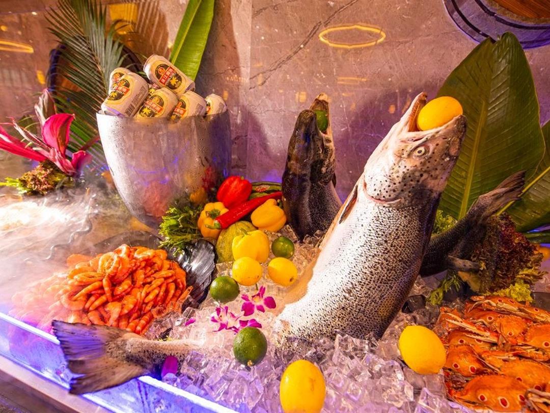 各式肥美海鲜、刺身寿司、扒类热菜、水果甜品...