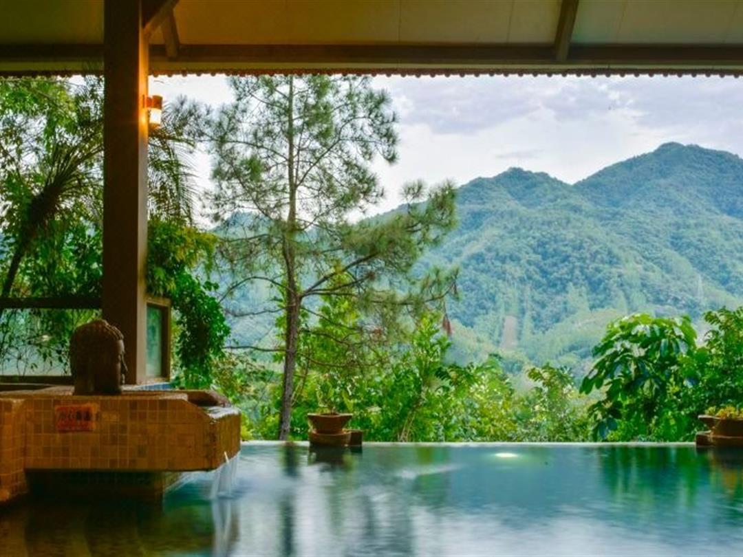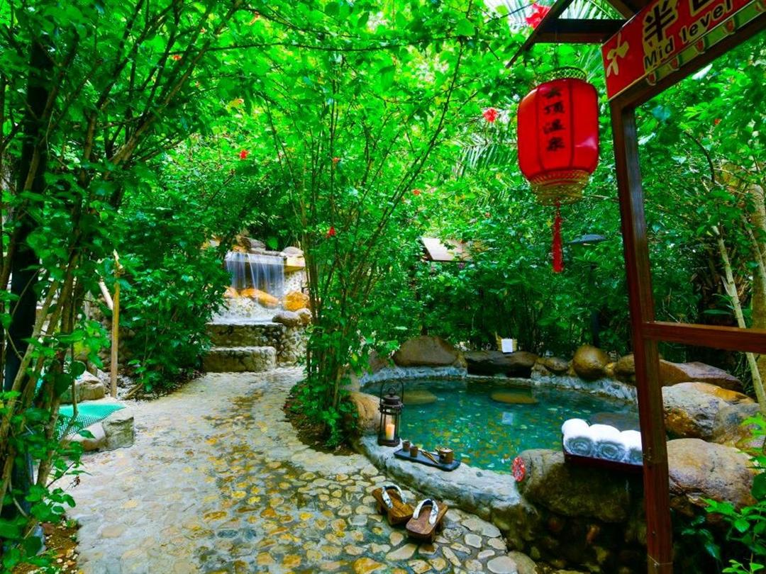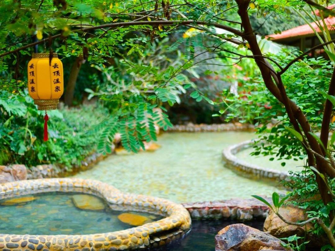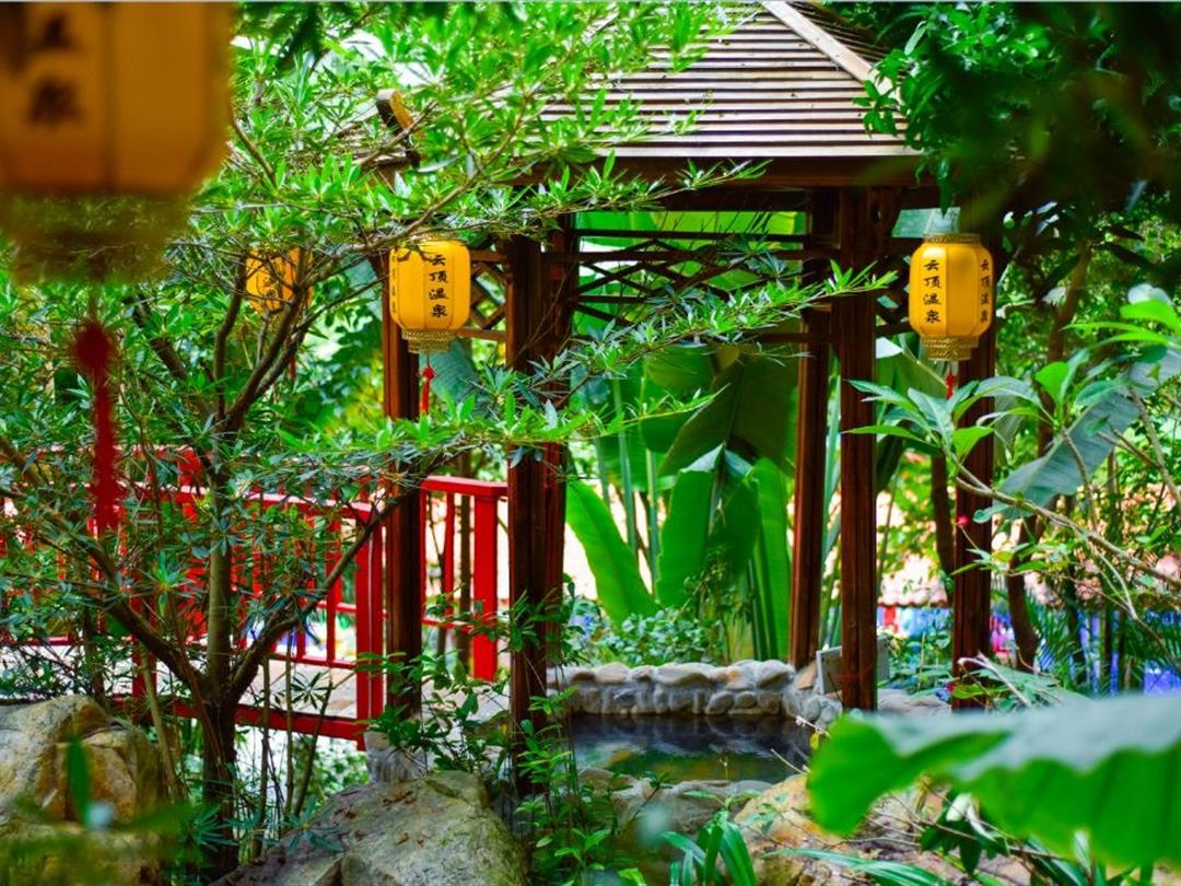 沿山而建的泡池郁郁葱葱,林木遮掩...
