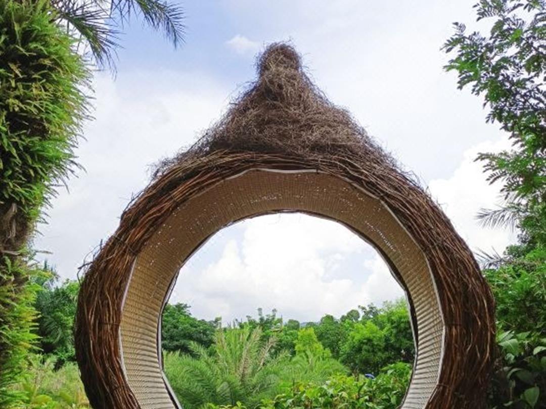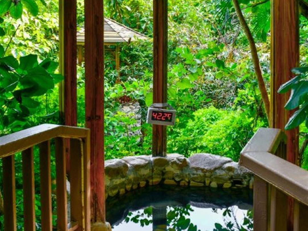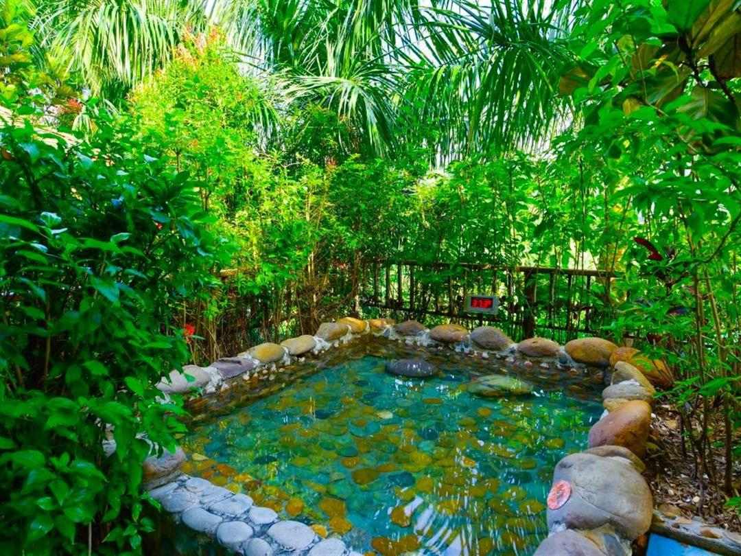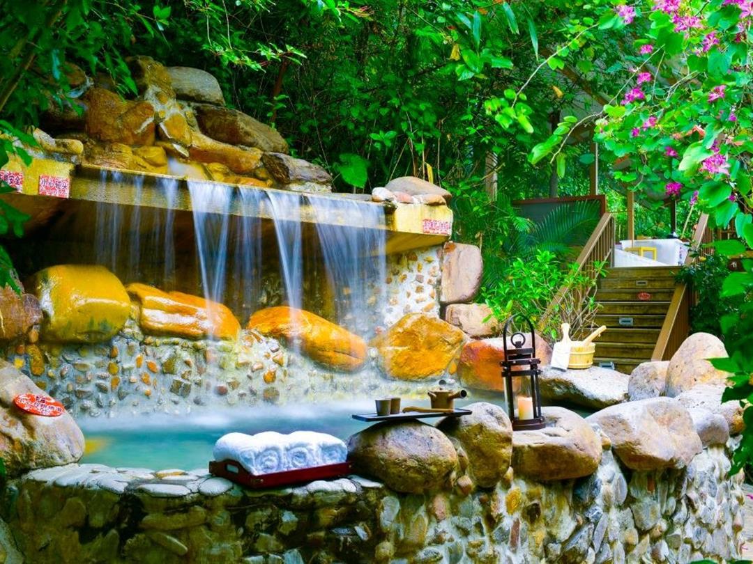 沿山而建的泡池郁郁葱葱,林木遮掩...