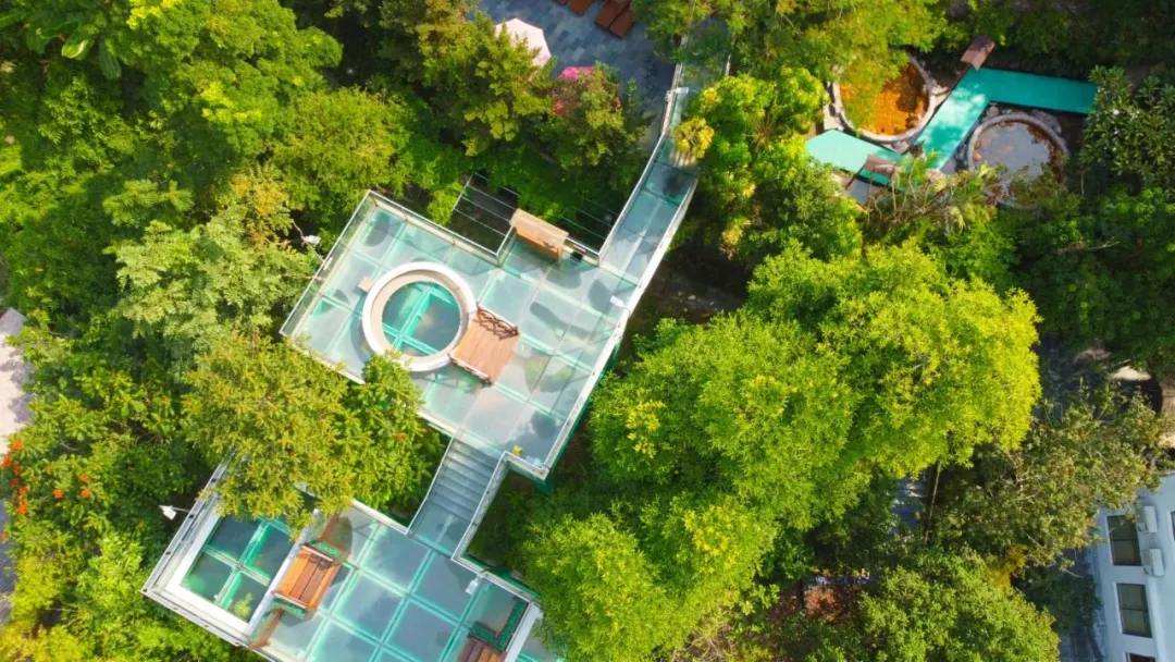 酒店置于森林秘境之中,山水相映