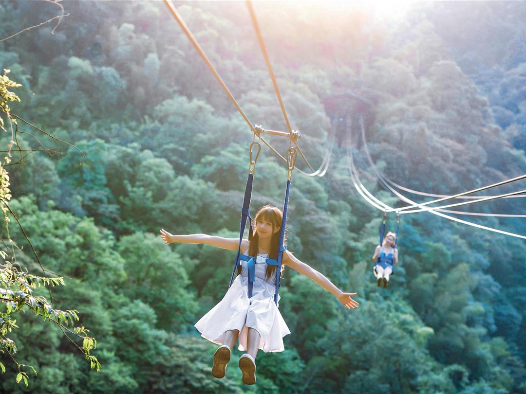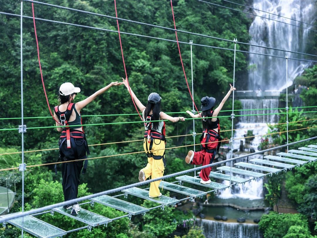 • 溯溪而上还有众多游乐项目:高桥、独木桥、铁链桥、螺旋梯、蜘蛛网、过浮桥、攀岩嶂、踩钢丝、乘浮艇、爬天梯、坐滑索、走长钢丝、高空铁链桥、跨铁链、穿网桥、过竹桥……