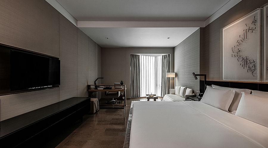 酒店采用黑白色系,空间感、立体感十足,高端大气。