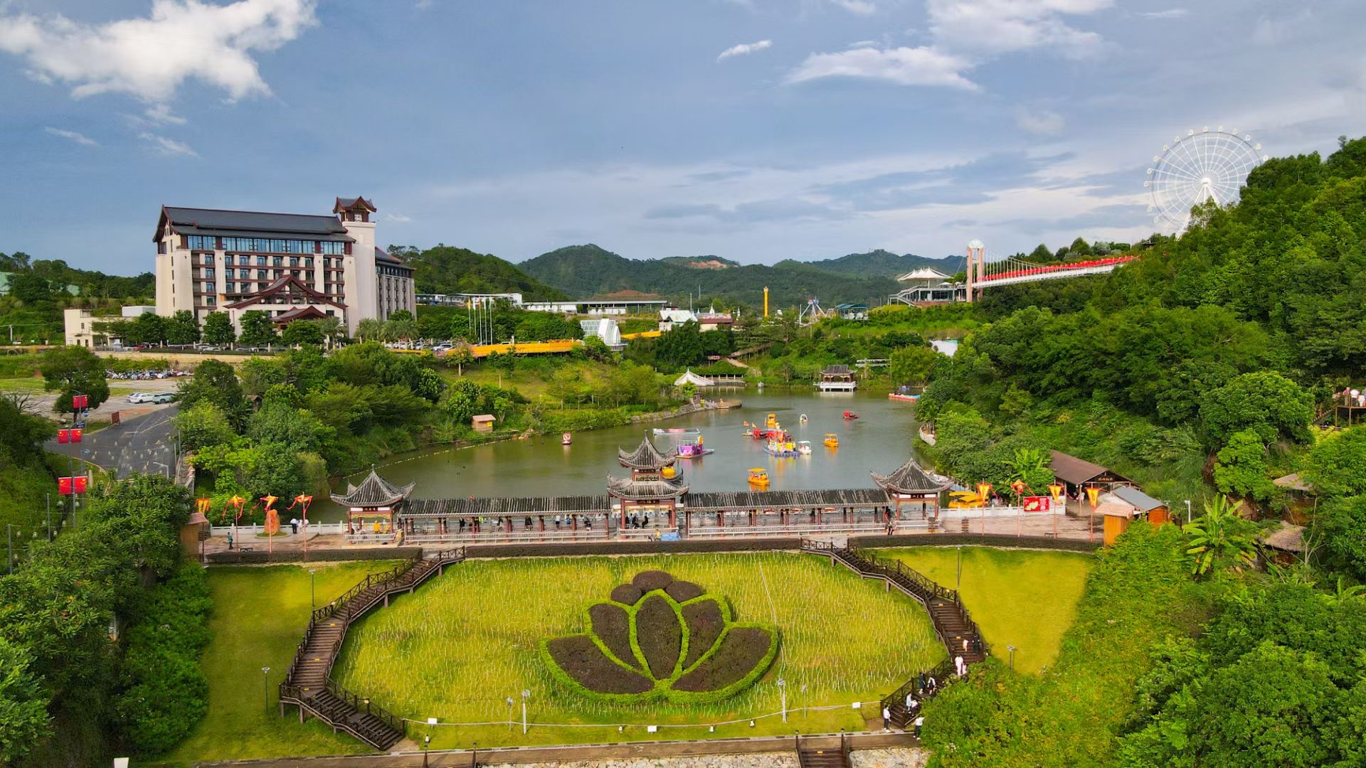 信宜莲花湖旅游度假区位于信宜市北郊池洞镇地处两广交界处,依山傍水、绿水青山、追逐健康、回归自然,占地600余亩,度假区内设有温德姆酒店、旅游景区、百越餐饮小镇三个板块。围绕“南玉之都”、“长寿之乡”和“全国生态保护与建设示范区”这三张名片下,创建生态旅游、休闲度假康养的主题度假区。度假区设备齐全、交通便利、风景优美是两广人民疗休养生、旅游度假胜地。