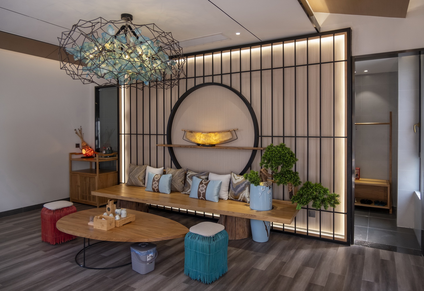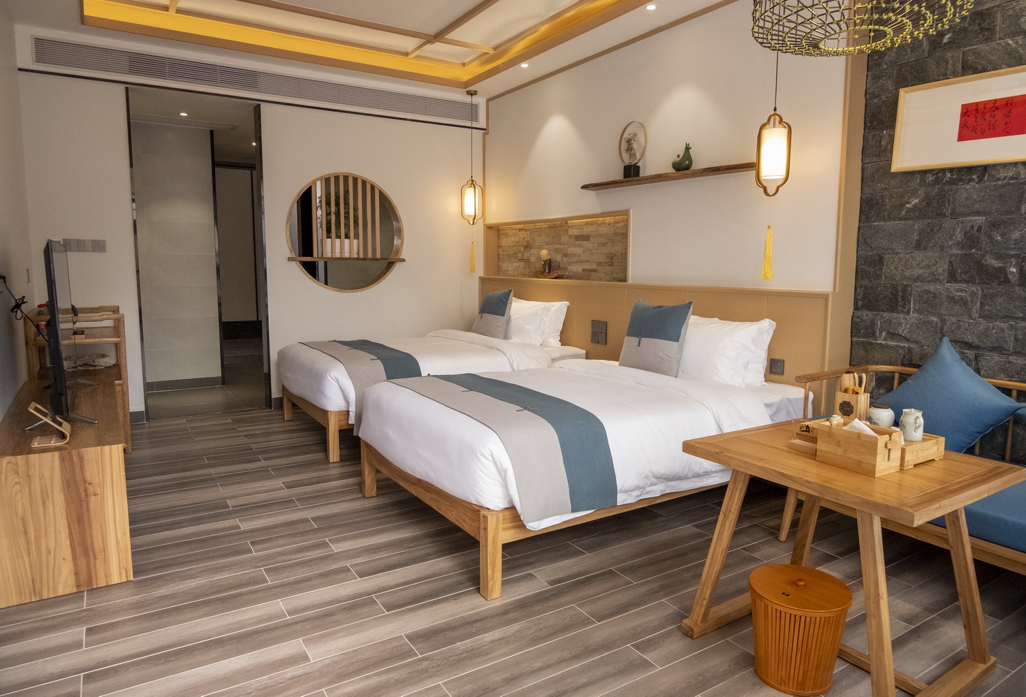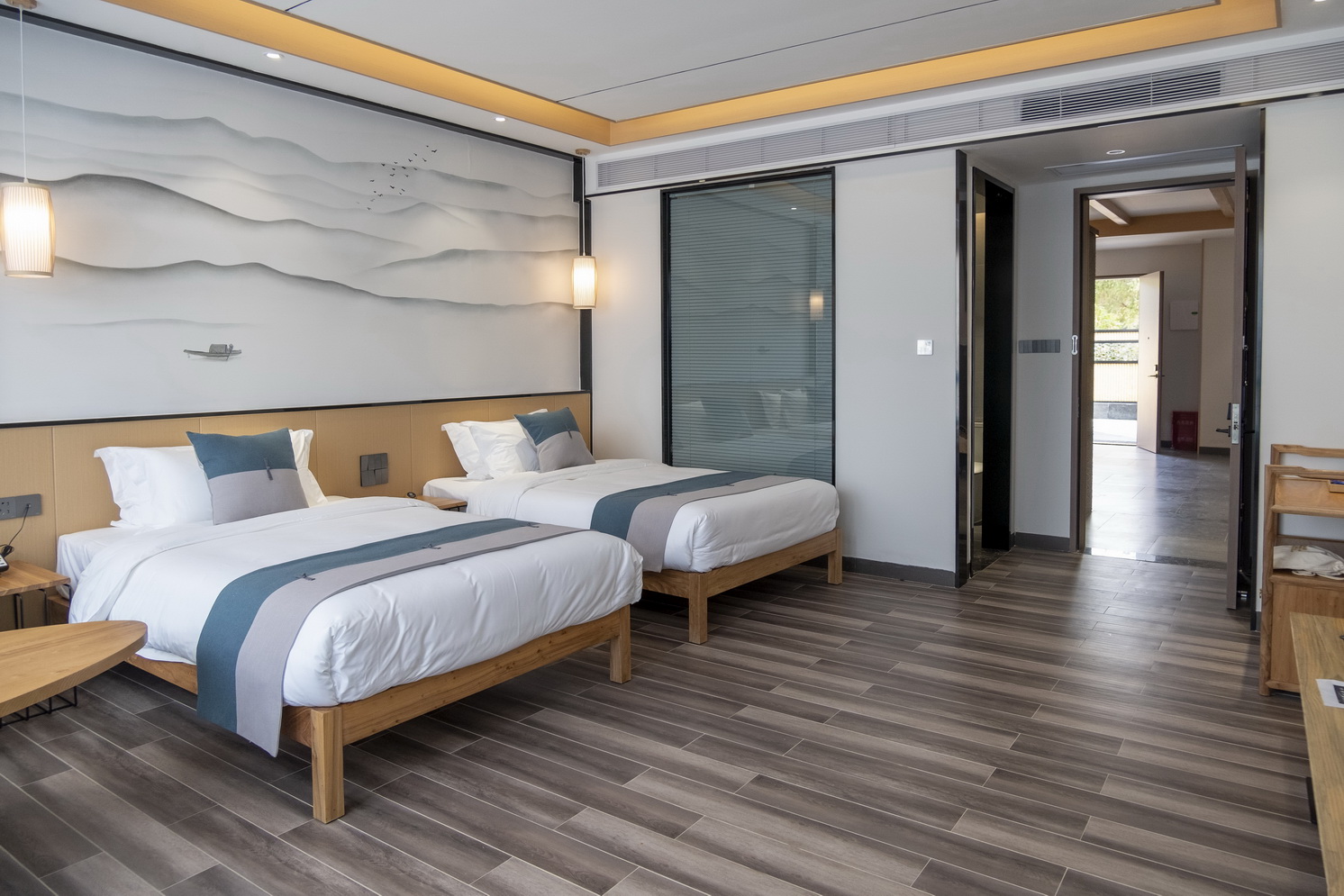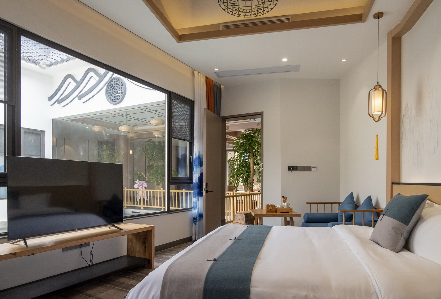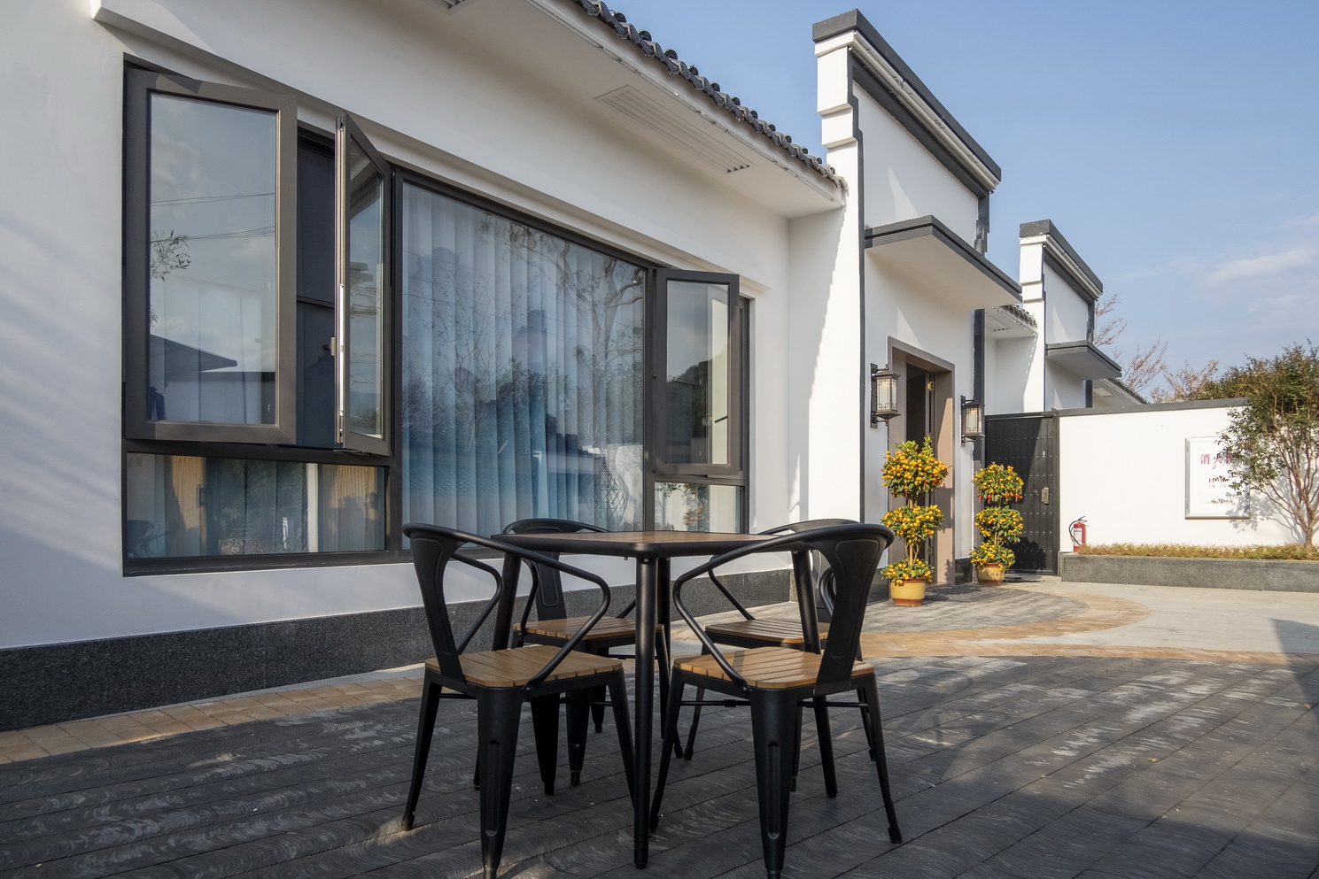 房型分布:合院、庭院房型为一期,溪边、雅院为二期