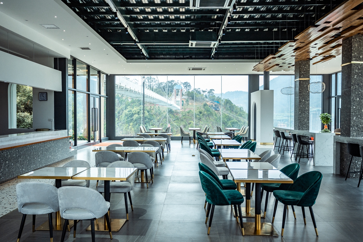 网红打卡桥,玻璃桥悬于两山之间,高40米,长度200米。两峰地势险峻、崖壁陡直,中间裂谷横穿。