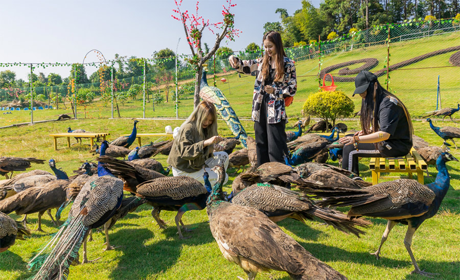 云门山孔雀放飞乐园是目前粤北地区的孔雀乐园,园内可近距离欣赏孔雀、与孔雀亲密互动,还可观看孔雀齐飞。当园内哨声响起,成百上千只孔雀在空中展翅高飞,场面非常震撼。自2019年7月园区开放后,吸引了大批游客前来打卡。