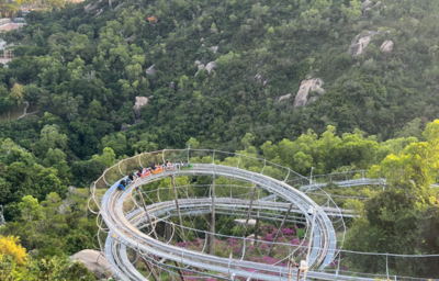 价格很划算,工作人员态度也很好,坐缆车上山⛰️,山上还有打卡的风景,有小卖部奶茶咖啡店,还可以拍拍照📸,坐滑道挺刺激的,领头的小哥很尽心尽责全程看着我们有没有跟上,也教我们如何操作