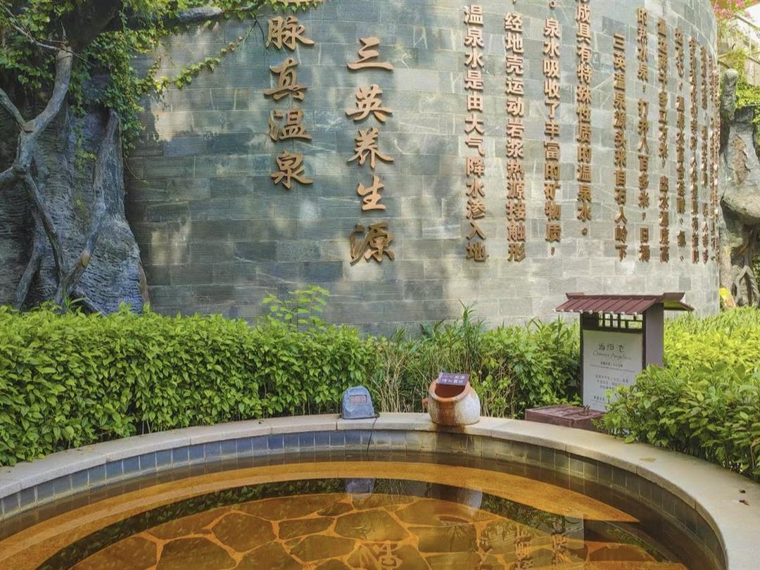三英温泉度假酒店以温泉养生、健康水疗为主题,拥有各具特色的室内外温泉浸泡区,露天温泉近70多个温泉池,分为十大区:动感娱乐区、日月乾坤区、五常六德区、神奇传说区、时尚特色区、吉祥五福区、名花区、名酒区、禅道区;国际会议室共13间,国际宴会厅1间可容纳800人,是集客房住宿、温泉养生、休闲度假、餐饮会议、康体娱乐、团队拓展于一体的综合性度假养生旅游胜地。