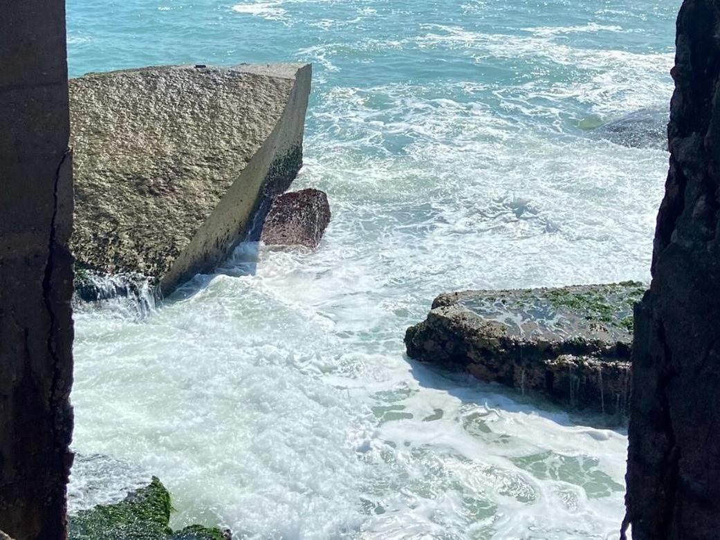 周边是原生态渔港,站在百多年的炮台上看着祖国高铁现代化