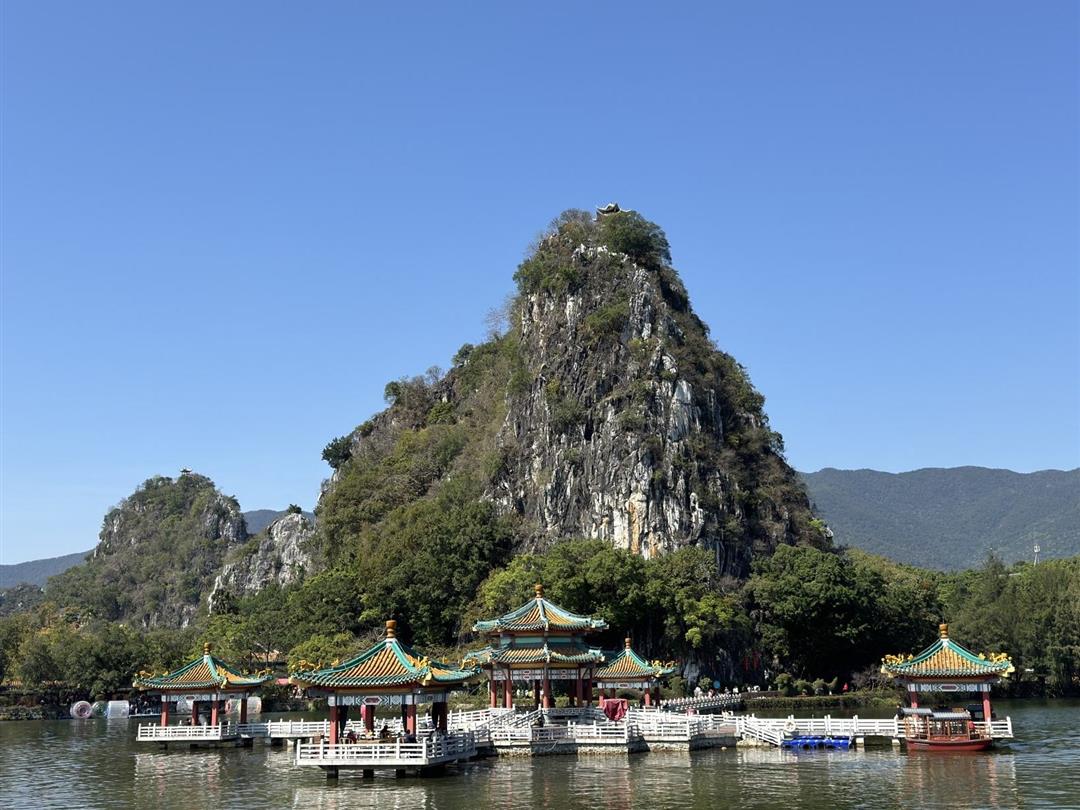 观赏完鸟类继续坐船前往出米洞码头,在这里可以远观湖对面的几座山所组成的“卧佛”。看完“卧佛”后,可以游览出米洞,也可继续坐船前往终点站,罗汉岛码头。可以游览完罗汉岛之后通过桥梁游览七星岩景区。