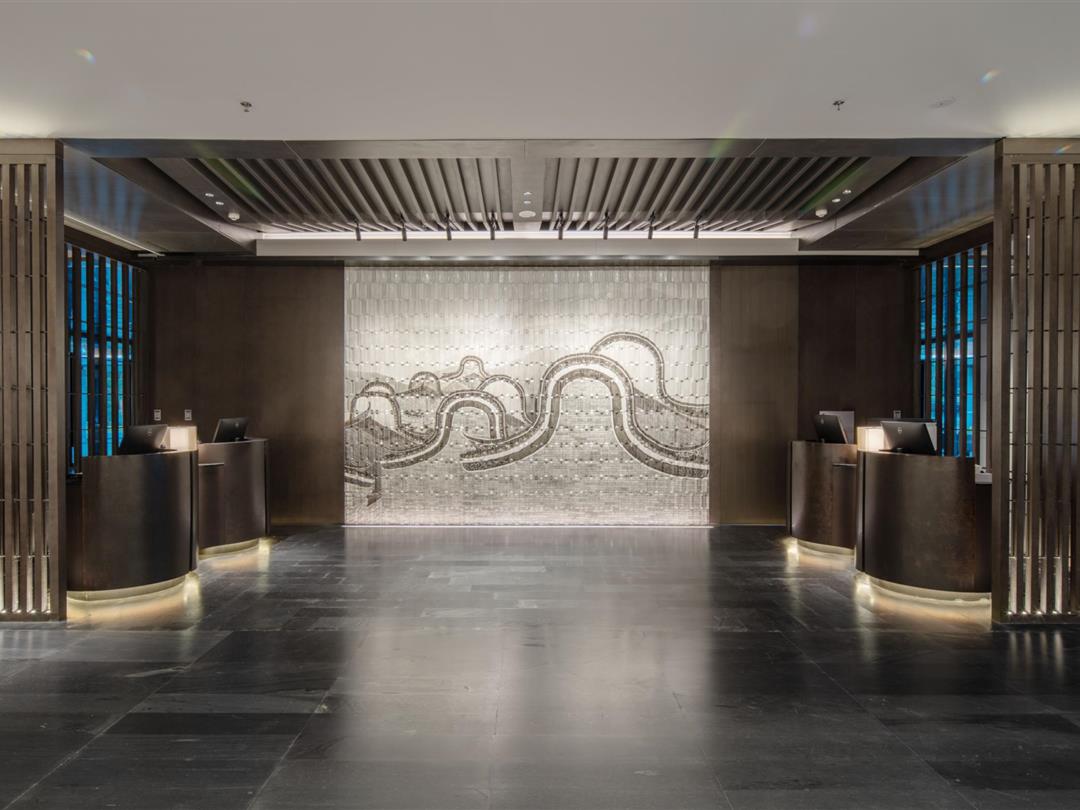 从海上丝绸之路中寻找文化足迹,纳广府建筑,取潮汕嵌瓷,收岭南园景,汇云山珠水神韵,彩笔描绘海上丝绸之路,让室内设计充满了岭南文化与现代艺术的融合。大堂以海上丝路、千年商都为主题,展现了中国源远流长的历史文化与意境。表达千年广府,文化出远,也以海上丝路见证广州古今繁华盛景。
