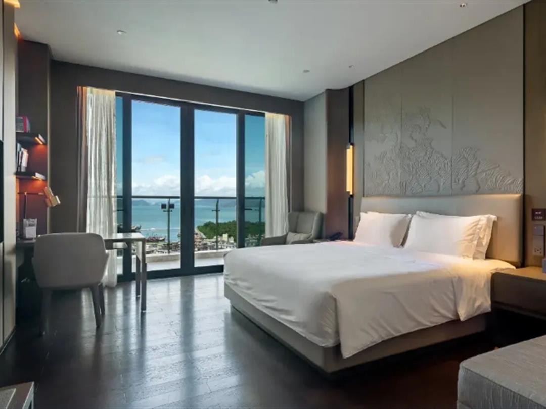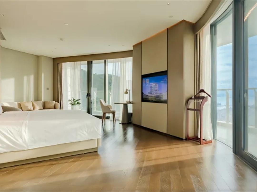 豪华海景客房36平起跳,室内空间很开阔,全景落地窗+户外阳台引景入室,俯瞰蓝天碧海,海风入梦,沉浸式体验本土渔乡文化。