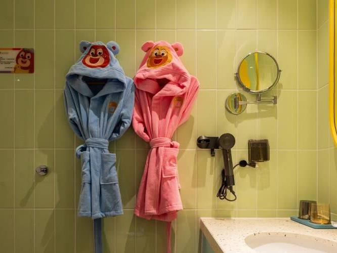 踏入酒店,光头强、熊大、熊二早已热情等候,邀你共赴狂野大陆的奇妙探险!大堂内处处皆是熊出没元素,仿佛施了魔法,瞬间将小朋友带入梦幻般的童话王国。