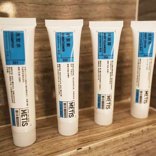 卫浴干湿分离,除了常见的设施,还有专门梳妆的灯镜。沐浴用品是澳大利亚品牌METIS。