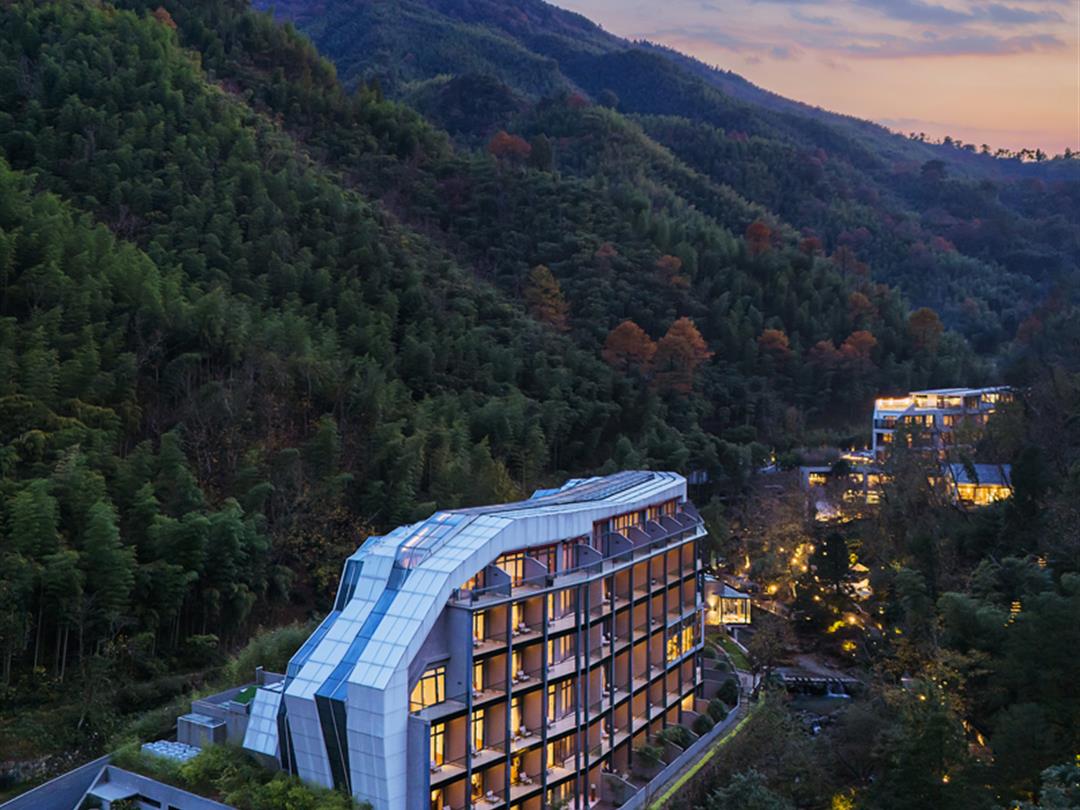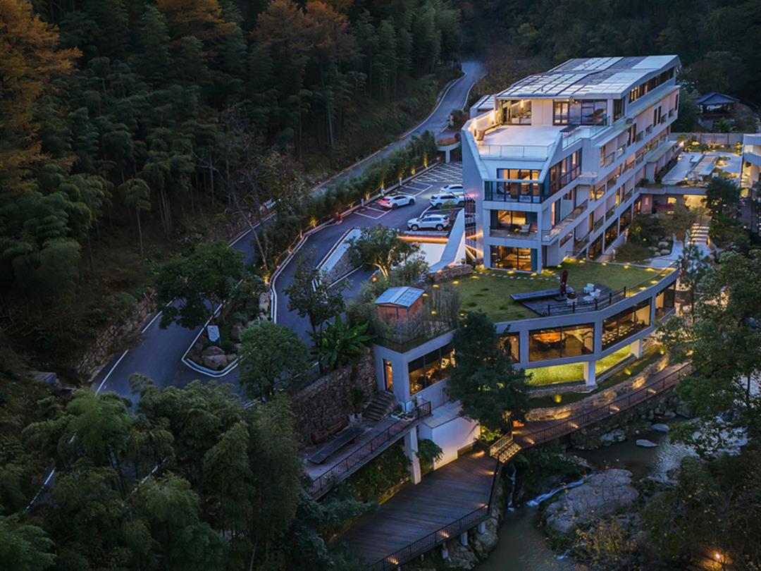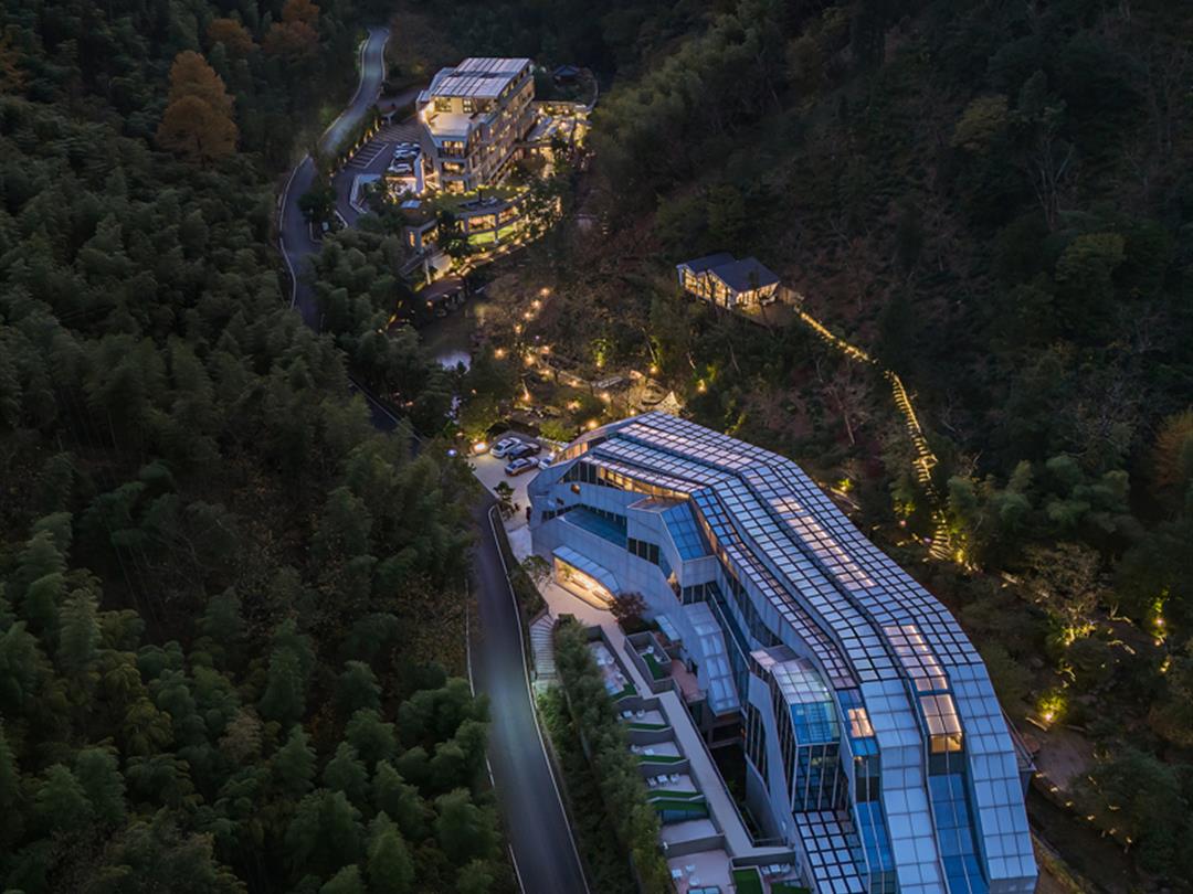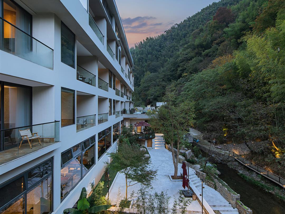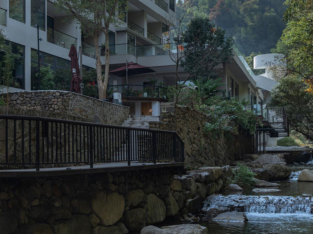 凭借着这份先天环境优势,安吉更诞生了不少度假酒店及美宿。其中,前后历时6年打造,2024年新开业的安蓝大溪度假酒店,便藏于天荒坪镇大溪村的峡谷秘境中,无论是选址,还是设计,堪称度假新典范!