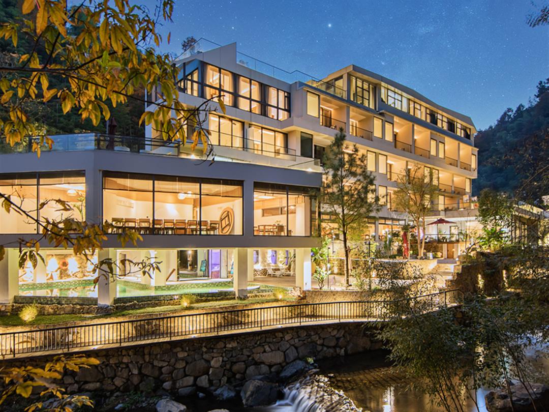 安蓝大溪度假酒店拥有103间客房及套房,屹立于峡谷大溪之畔,依山势而建,集齐了大溪村的山水优势,让每位到访之人,在酒店内,就能饱览山川竹林溪流多重美景,部分客房带汤泉泡池。