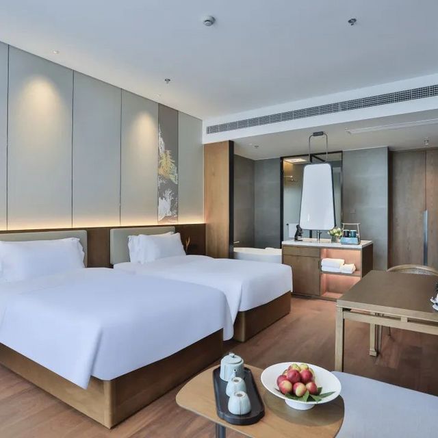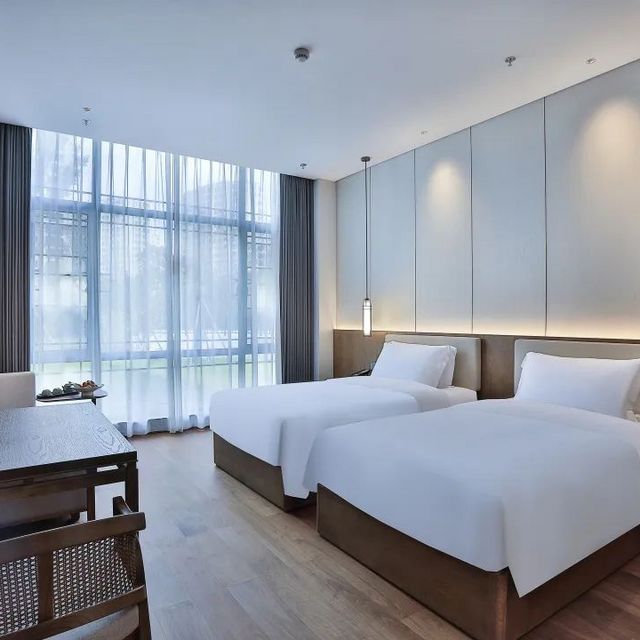 大堂设计摒弃繁琐设计,从色调到气氛烘托均悠然呈现,宁谧、纯美、舒展气息自然而然地弥漫其间。还提供蜈蚣峙码头接送,满足客人出行的需求。